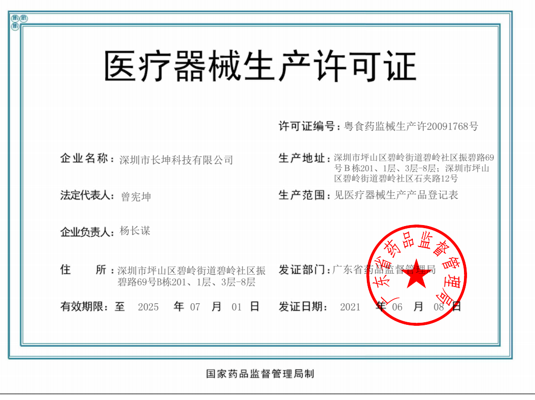 歡迎來到深圳市長坤科技有限公司官網! 粵深食藥監械經營備20151166號 粵食藥監械生產許20091768號